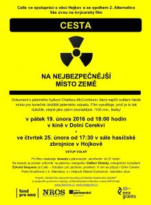 Po filmu následovala beseda o problematice, které se zúčastnil odborník na jadernou energetiku Dalibor Stráský, energetický konzultant Edvard Sequens za Callu – Sdružení pro záchranu prostředí a v Dolní Cerekvi Petra Nováčková z 2. Alternativy, v Hojkově Milada Duchanová, starostka obce.