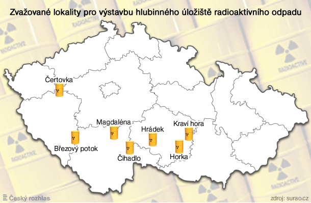 Stát hledá místo, kam začne zhruba za 50 let ukládat vyhořelé palivo z jaderných elektráren a další radioaktivní materiál. Ve hře je sedm lokalit. V pěti z nich ministerstvo životního prostředí letos povolilo provést první průzkumy. Jedním z vytipovaných území je Čertovka na pomezí Plzeňského, Středočeského, Ústeckého a Karlovarského kraje. Některé obce už se proti průzkumu odvolaly.