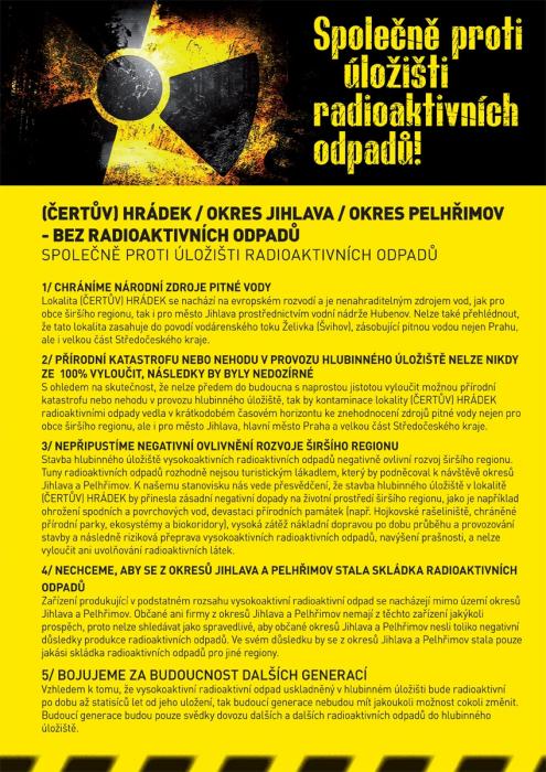 Dnešní odpoledne patřilo v kulturním domě v Dolní Cerekvi na Jihlavsku jednání o hlubinném úložišti radioaktivního odpadu. Šest obcí, které jsou úzce spojeny s lokalitou zvanou Čertův Hrádek, což je jedna z uvažovaných lokalit pro úložiště, hromadně podepsalo dohodu o společném postupu. Jejich další kroky mají vést k vyřazení z uvažovaných lokalit.