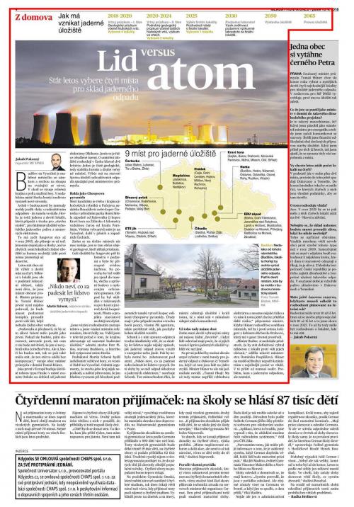 Česko o plánuje „stavbu století“ - hlubinné úložiště vyhořelého jaderného paliva z atomových elektráren, které má začít fungovat v roce 2065. Ovšem už nyní je třeba vybrat správnou lokalitu a letos chce stát zúžit výběr z devíti míst na čtyři. A ministr průmyslu pohrozil, že možná bude muset podzemní komplex prosadit proti vůli lidí. Ve všech lokalitách totiž žádné úložiště za humny nechtějí.