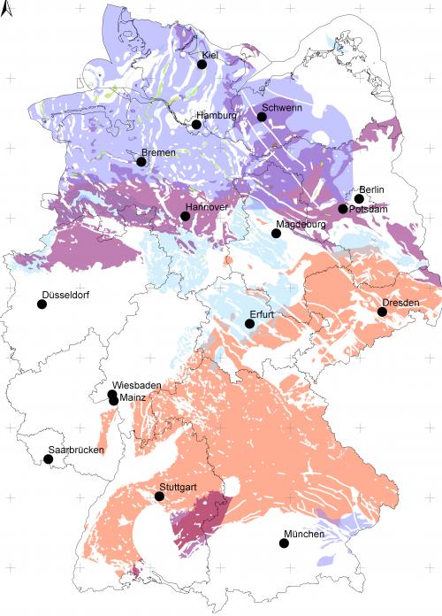 Velká část těchto oblastí se nachází v Bavorsku včetně tamní strany Šumavy či Českého lesa (Hornofalcký les), v Sasku příhodné regiony v Krušných horách také zasahují k hranicích s Českem. V Sasku ve výběru zůstalo i území Lužice či okolí Drážďan. Hledání konečného místa se soustředí také na sever Německa, který byl zahrnut prakticky celý. Vhodné podloží se nachází i pod částí Berlína.