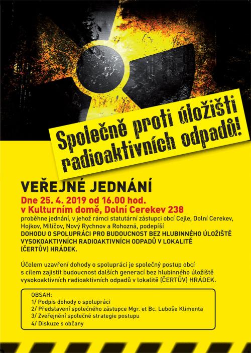 Dolní Cerekev, 17.4.2019 – V době stále se zvyšujícího nedostatku pitné vody se stala Českomoravská vrchovina nenahraditelným zdrojem pitné vody národního významu. SÚRAO vážně uvažuje o zřízení hlubinného úložiště vysokoaktivních radioaktivních odpadů v lokalitě (ČERTŮV) HRÁDEK, která vodou zásobuje nejen okolní obce, ale i krajské město Jihlava a prostřednictvím Želivky i hlavní město Prahu a Středočeský kraj. Tomuto chtějí zabránit starostové z Vysočiny a na veřejném jednání představí společnou strategii.